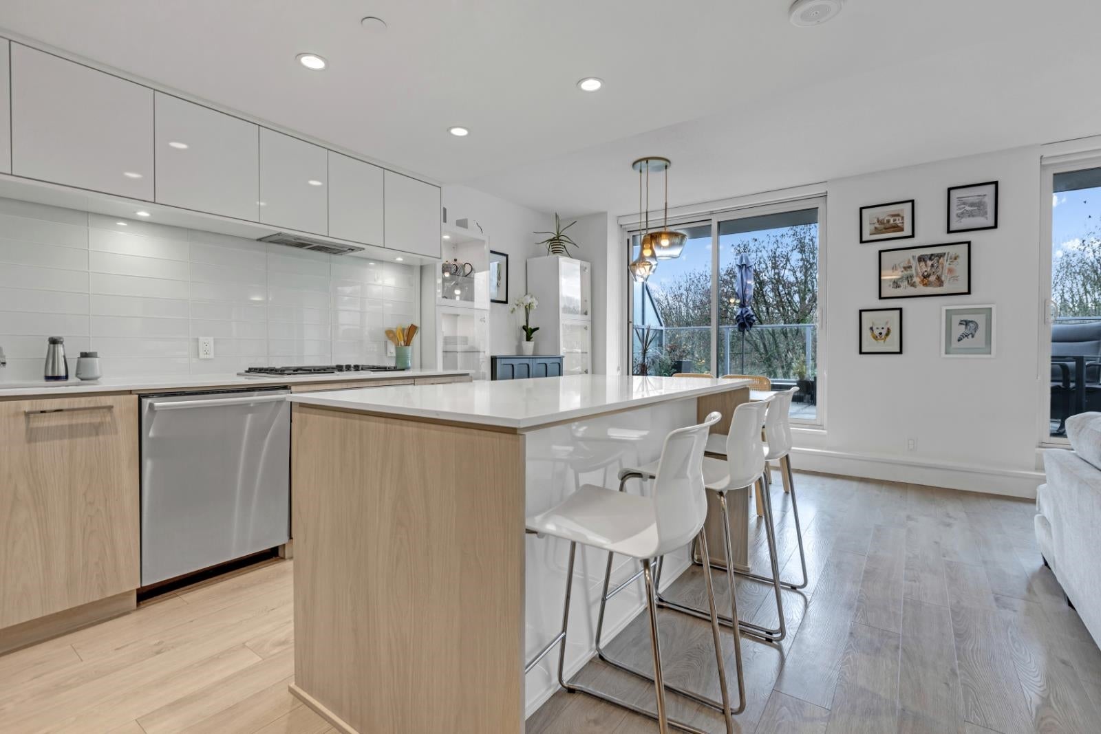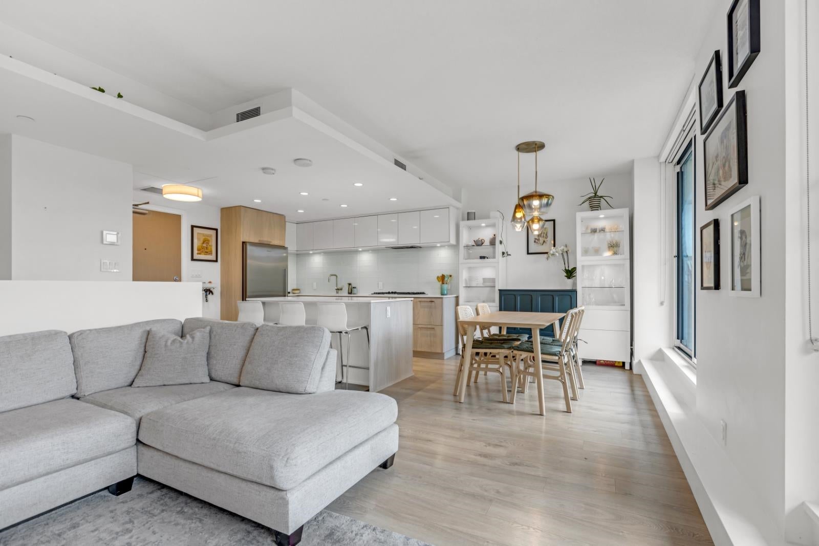 Discover elevated North Shore living in this top-floor, two-level City home with breathtaking views of Grouse Mountain, Lynn Creek, and a peek of Vancouver. This 2-bed + den, 2-bath home offers west-facing triple-pane windows, a European kitchen with Bosch and Fisher & Paykel appliances, and dual sliding doors leading to a large balcony. The lower level has a primary bedroom with ensuite, second bedroom, full bath, den, and in-suite laundry. Amenities include concierge, Denna Club access with a pool, gym, sauna, and steam room, plus guest and meeting rooms. Pet-friendly, with storage, bike room, and parking near the elevator-just minutes from downtown and nature! OPEN HOUSE: Sunday, June 1'st, 2-4pm